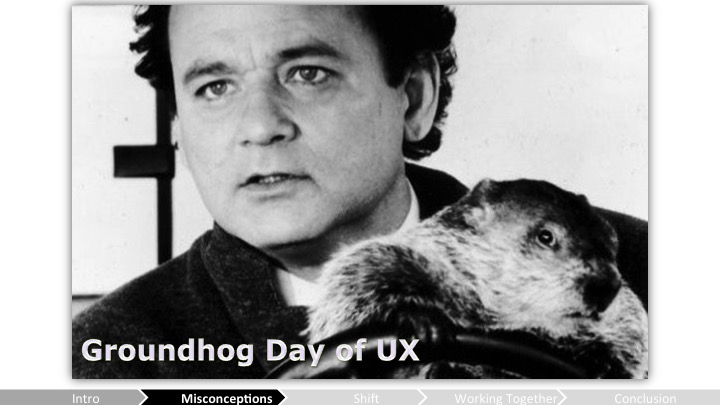 Celia –내가 10년 전에 엔터테인먼트 산업에서 시작할 때는, UX는 별게 없었어. 내 타이틀은 "UX 뭐시깽이"가 아니었지. 처음으로 UX 타이틀을 갖게된 건 LucasArts에서 일할 때였는데, 고작 4년 전이야. 그리고 그건 내 공식 직함도 아니었고. 새 팀과 일을 시작할 때마다 매번 내 첫 숙제는 UX가 가진 오해들을 풀어내는 것이었어. 이건 내 UX판 Groundhog Day(역자 주: 매일 같은 날을 사는 영화 제목) 같았다고.