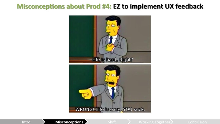Celia – 그들은 UX피드백이 더 중립적이고 과학적(제대로 했을때에 한해서)이란 걸 완전히 깨닫지 못했어. UX피드백은 다른데, 왜냐하면 UX 전문가들은 HCI(휴먼-컴퓨터 인터렉션) 문제와 그걸 고치는데 필요한 인지/실험 심리학과 Human Factors 교육을 받았거든.