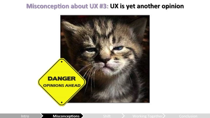 Heather – UX는 그저 우리 게임의 다른 의견일 뿐, 네가 제공하는 그 의견은 마케팅 담당자의 의견에 비해 그 이상 그 이하의 값어치도 지니지 않아.