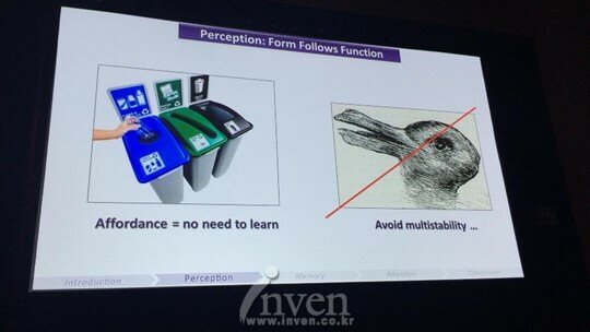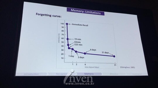 인간이 정보를 처리하는 인지, 기억, 집중의 세 가지 요소. 셀리아 박사는 인간의 두뇌는 한계를 지니고 있기에 게임 UX을 디자인하기가 상당히 까다롭지만, 반대로 그 한계를 잘 이해한다면 유저 스스로 학습할 수 있는 UX의 핵심을 만들 수 있는 열쇠가 될 수 있다고 주장했다.